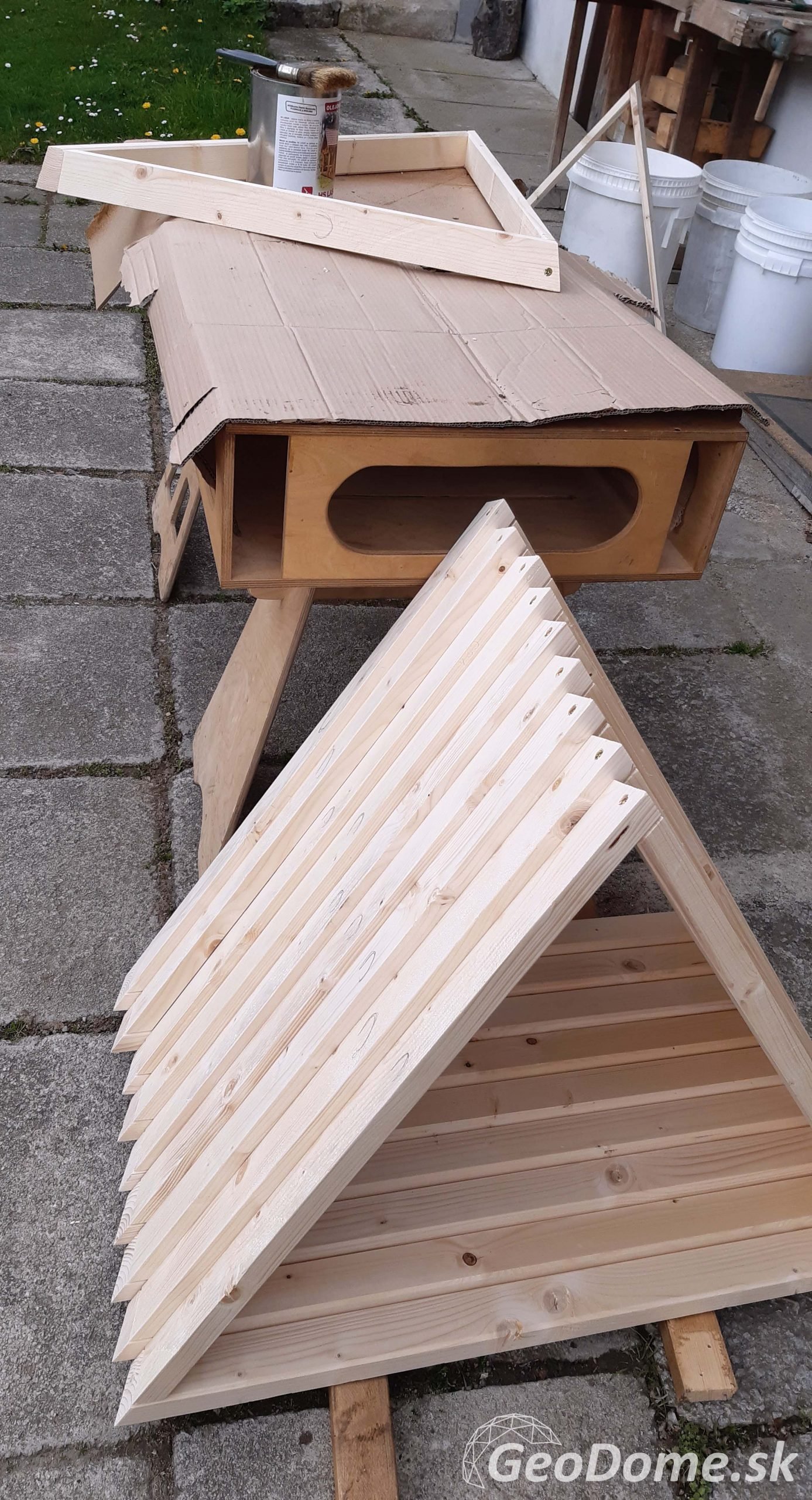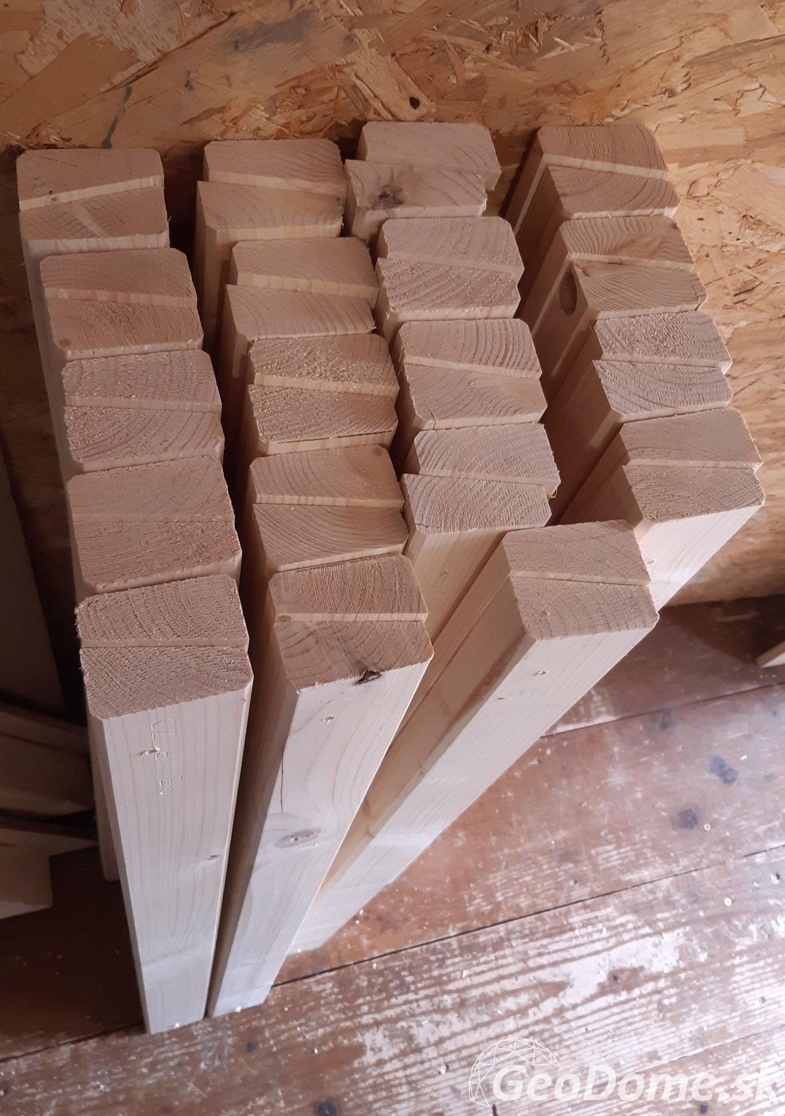 - ošetrenie drevených hranolov zdraviu nie škodlivým olejom – 2 náterové vrstvy